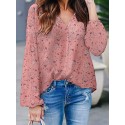 Calico V Neck Long Sleeve Casual Blouse