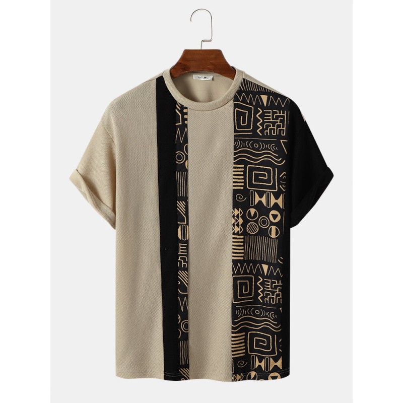 Mens Asymmetric Tribal Printed Short Sleeve O Neck T-Shirts